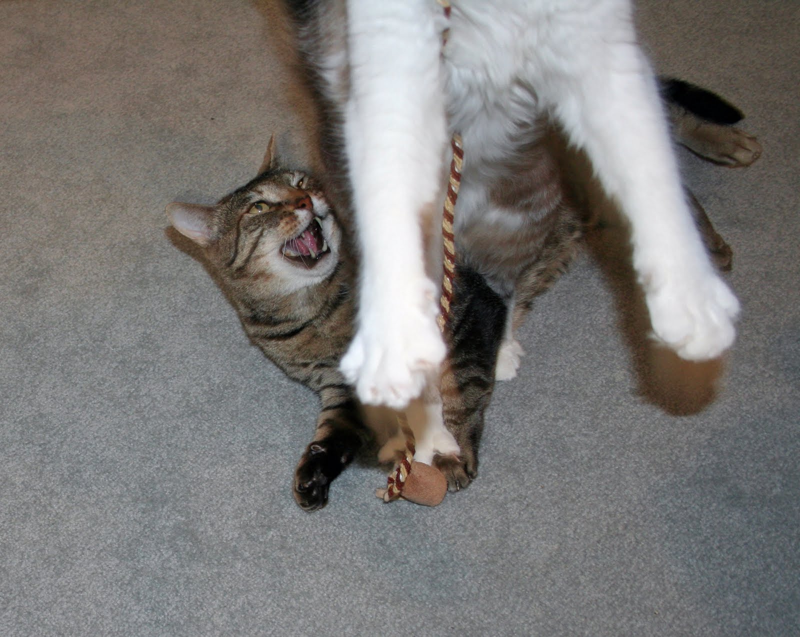 Newman and Vivien took turns batting and catching the mousie!