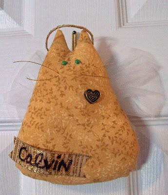 I'm thinking of offering a cat angel in my Etsy shop. They would be special order, and the fabric could match the color of your cat. I was inspired to make this one in memory of Calvin.