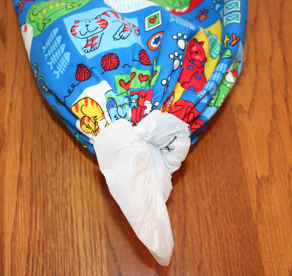 These storage bags will hold a lot of plastic bags - big opening at the top to stuff them all in, and a smaller opening at the bottom to allow one bag to be dispensed at a time!